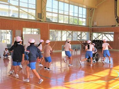 各学年の発表では、6年生が縄跳びダンスを披露しました。