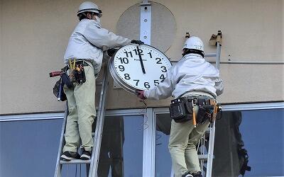 校舎の外時計が故障したので、取り替え作業をしてくださっていたのです。