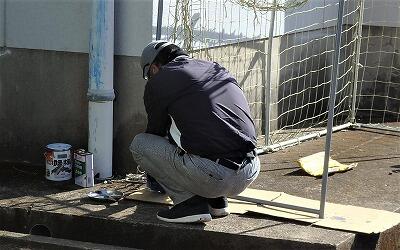 校舎北東の犬走の工事は、いよいよコンクリートの敷設作業です。