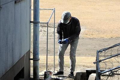 作業していたのは、ミニサッカーゴールでした。冬の体育で使います。