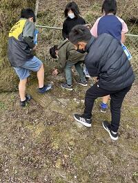 なかなか生き物は見つからなかったものの、冬の自然の様子に興味津々の子どもたちでした。