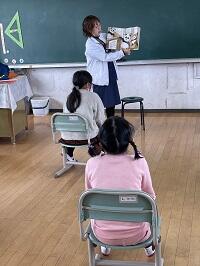 1月28日(金)に、市立図書館の方々による「読み聞かせ」がありました。今回は、1・2・3・4年生のために、館長さんをはじめ3名の方にお越しいただきました。