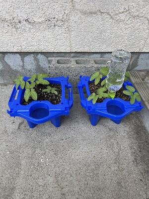 1年生の育てている朝顔が少しずつ大きくなってきました。