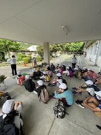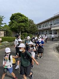 校長先生の話が終わって出発!!金谷小から運動公園までおよそ4KMの道のりを歩きます。