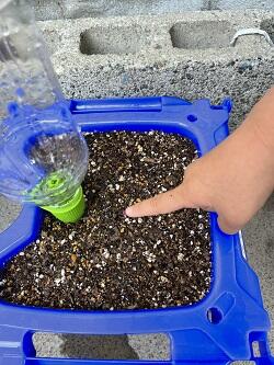 そこで、一旦ジョーロに入れて、それからペットボトルに入れることを思いつきました!