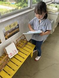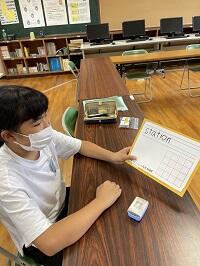先生の発音したアルファベットを正しく書いていき、できた単語を読んでみます。正しくは書けたものの・・・station・・・読み方が・・・