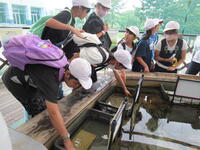 そこで、教頭先生が池のそうじを5月終わりから定期的にやってくれています。6年生も手伝ってくれることもあります。今日は、暑くなる前にできるだけ池をきれいにしておこうと、先生方も池そうじに参加してくれました。