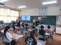 今日は、ALTのマリア先生といつも外国語を指導してくださっている串間中の山崎先生のお二人が、5・6年生の外国語の指導をしてくださいました。