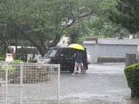 雨の中、本番さながらの訓練となりました。保護者の皆さんは、時間を守り、誘導に従って行動しておられました。引き渡し訓練は、混乱なく進めることができました。