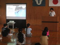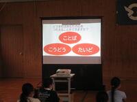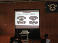 次に、7月の目標について人権担当の先生からお話がありました。7月の目標は「相手の気持ちを考え、友だちと仲良く遊ぼう」です。7月1~7日は宮崎県いのちの教育週間です。それに合わせて学校でも人権に関する学習や取組をしていきます。子ども達に、お互いを尊重し合うことの大切さを考えさせたいと思います。