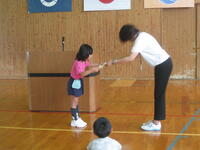 保健委員会が、むし歯の治療が終わったお友達に、賞状とメダルを渡しました。委員会の自主的な取組です!