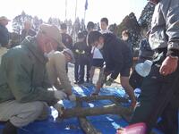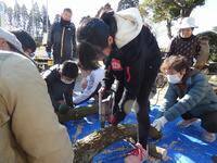 今日、昨年度に引き続き、北方・秋山郷の会の皆さんにご協力いただきしいたけの駒打ち体験を行いました。