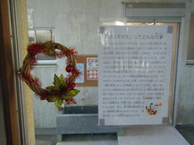 昨年度同様、ツリー、リースそして、花瓶にクリスマスに関係する植物を活けました。