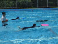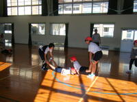 体育館でしたので、実際に消火はしませんでしたが、消火器の使い方の手順を教えていただきました。