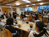 給食時間は、3年生は福島小の児童に交じって給食当番もしていました。