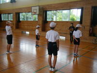 体育では、体づくり運動をしました。最後には息を合わせて全員大繩に挑戦しました。