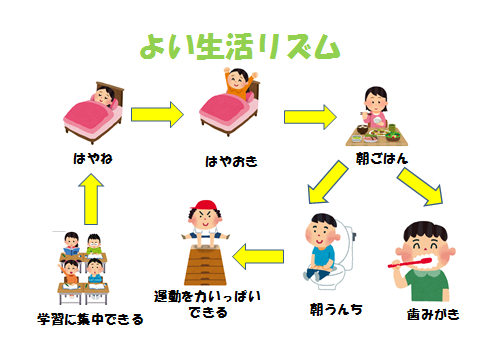 はやね・はやおき・朝ごはん・朝うんちだけでなく、そのために何を気をつけるかを考えて生活を送って欲しいと思います。