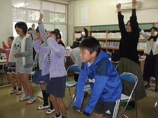 最後に、全員で「鬼のパンツ」の替え歌を使って、おなかの体操をしました。