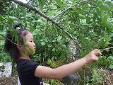 雨にぬれた木からおちる水滴をものともせず、収穫していました・・・♪