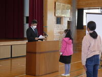 2学期を振り返り、様々な行事を通して心も体も大きく成長したこと、それは、先生たちや保護者、地域の皆さんのおかげであること、そして、これからも成長し続けてほしいということを話しました。