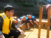 今回の出前講座では、串間土木事務所と串間市建設業協会(青年部)から合わせて20名以上の方にお越しいただき、土木の仕事について教えていただいたり、体験したりすることができました。