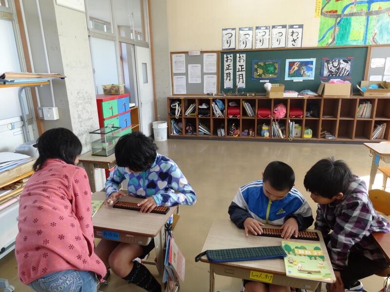 3年生は算数の最後の学習でそろばんをします。