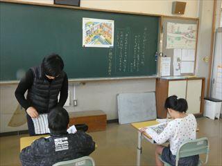 授業では明るいところとくらいところで絵本を読み、読みやすさを体感してもらいました。