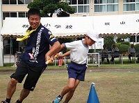 地区の運動会も兼ねているため、消防団の方々とのユニークな競技もあります。