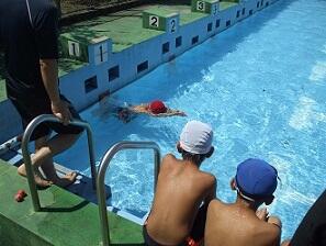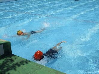 梅雨明けの真っ青な青空の下、みんな立派に泳ぐことができました。