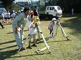 初めて操作する機器や大型機械に、子どもたちは興味をもって楽しく活動する様子が見られました。また、測量機器で遠方に見える山頂までの距離を測れることを知り,子どもたちはとても驚いていました。