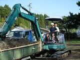 はじめに、土木事務所の方々から、土木事業とはどんなことかについて、分かりやすい説明がありました。その後、子どもたちはグループに分かれ、串間市建設業協会青年部の方々に教わりながら、測量機器の操作や土木大型機械の運転を体験しました。