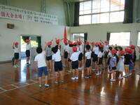 今日の内容は、入場行進、開会式そして閉会式の練習でした。
