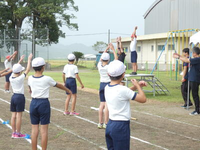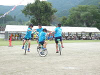 本校の児童は、徒走、団技、表現(一輪車演技)に全員が参加し、全校リレーは、選ばれた2名のみが参加しました。