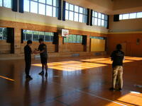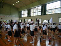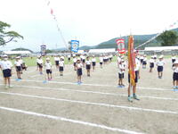 残念ながら途中で雨が強くなり、ラジオ体操を途中で切り上げて体育館に移動しました。
