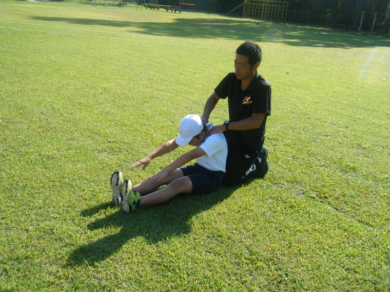 体を柔らかくすると、けがの予防やパフォーマンスの向上につながります。そのために、体をほぐすことの大切さを教えてくださいました。