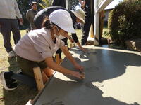 串間市建設業協会の青年部の方には朝早くから来ていただいて、ごみ捨て場の下と屋外掲示板の下をコンクリートで固めていただきました。
