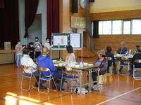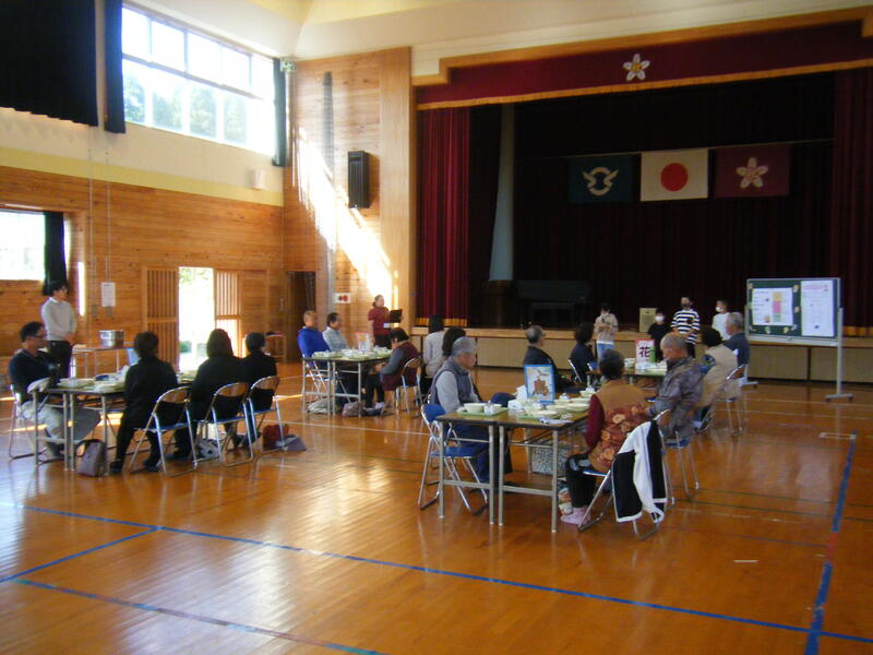 グラウンドゴルフ交流会終了後、体育館に移動して、交流給食を行いました。