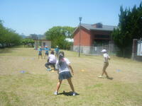 児童会で決めたレクレーションを3つ(ドッジビー、けいどろ、タグ取り鬼)しました。