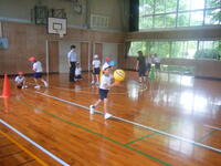 給食も一緒に摂り、そのあと体育館で一緒に遊びました。