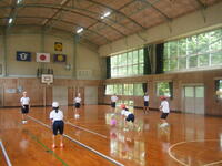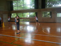 はじめの会をしたあとに10分間練習をして、5つの団体技にチャレンジしました。