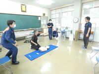 6月9日(金)の放課後に串間市消防署から2名の署員の方においでいただき、心肺蘇生法の講習会を行いました。