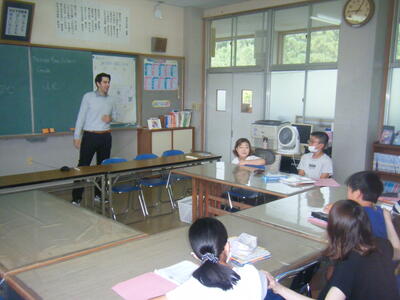 本校に来られるのははじめてだったので1時間目は全校児童を対象に自己紹介をしていただきました。