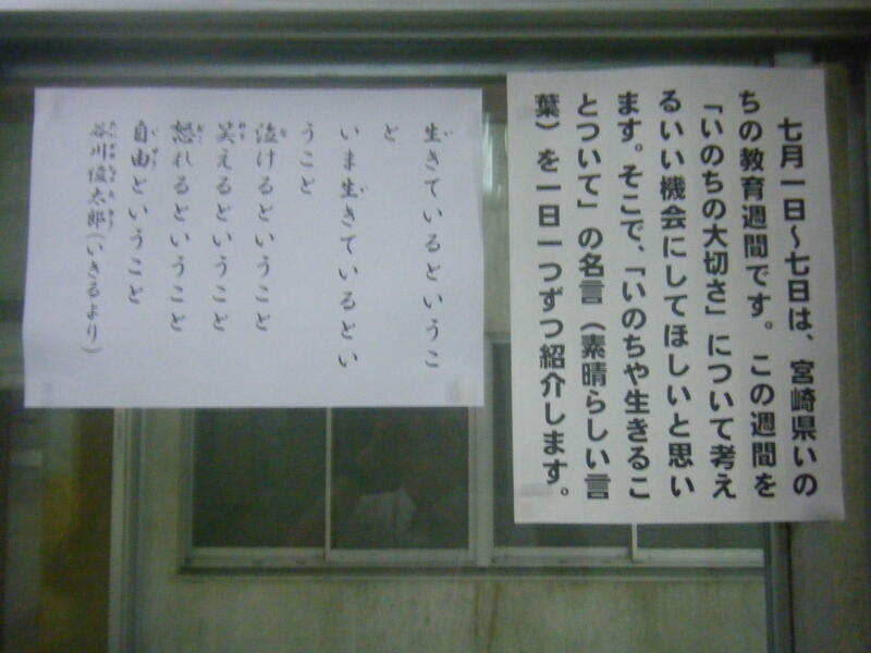 7月1日~7日は、宮崎県いのちの教育週間です。そこで、昨年、一昨年度に引き続き、「いのちや生きることついて」の名言を一日1つずつ紹介することにしました。