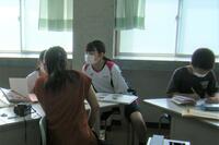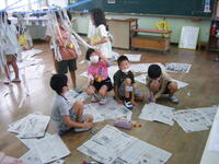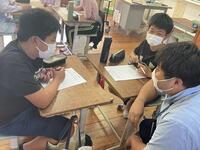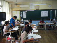はじめの会をしたあと、まずは、学習会ということで、夏休みの課題に取り組みました。