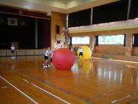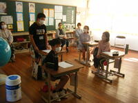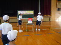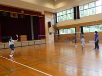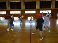 参観授業後は、児童は、体育館で大平小学校の児童と一緒にポートボールなどをして交流しました。