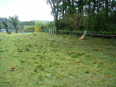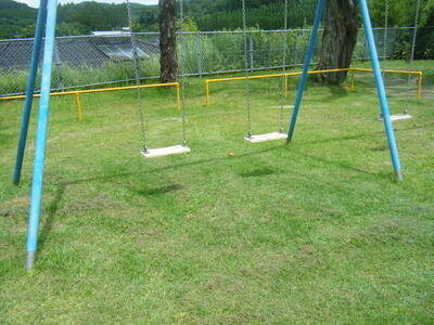 昼前には、帰省されて学校を訪れる方もいらっしゃるかと思い、遊具の周りの草刈りやクモの巣の撤去、校門坂の清掃などを行いました。
