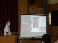 今年度の平和集会は、退職教職員歴史を語り継ぐ会の方による紙芝居の上映と県原爆被害者の会の郡司様のお話が主な内容でした。