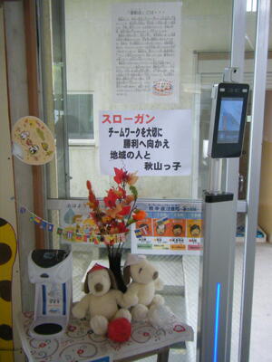 「チームワークを大切に 勝利へ向かえ 地域の人と 秋山っ子」です。