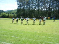 ミニハードルでの練習後、実際に50m、100mを走って記録をとりました。