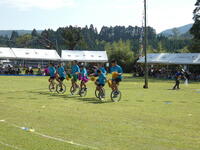 秋山小6年生2名と大平小5年生2名のチームと、秋山小4年生2名と大平小4年生1名、秋山小職員1名のチームで競走しました。